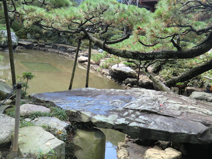 池に架かっている大きな石は「天橋立」を表している。