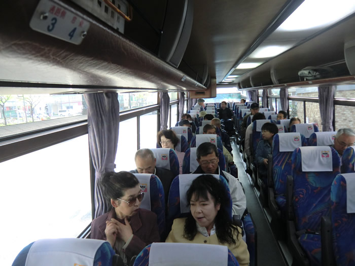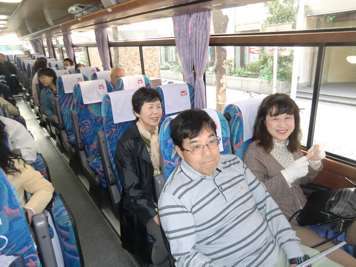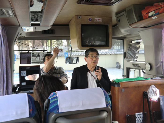 バスでは、ビンゴ。8期生の岡村さんがゲット。品物は、震災にちなんで、LED協力ライト。仕事も頑