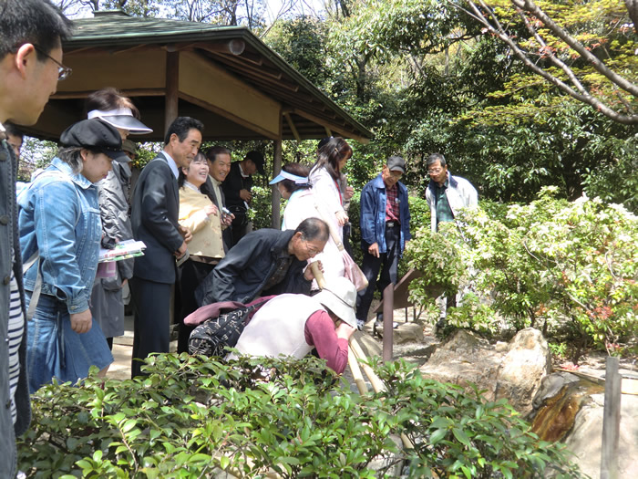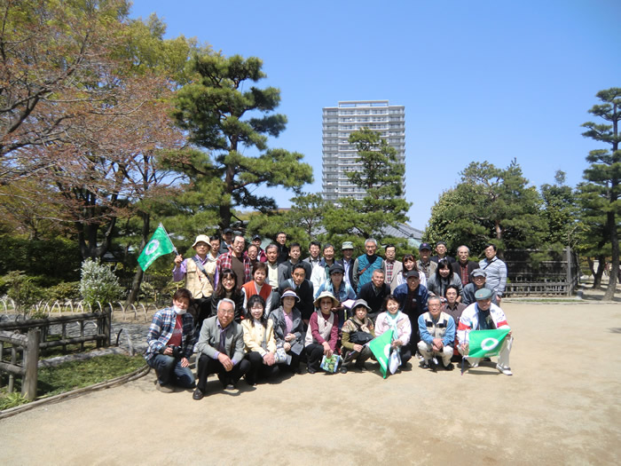 満開の桜の下、尾張の庭園巡りは無事に終わりました。37名の参加でした。白鳥庭園、名古屋