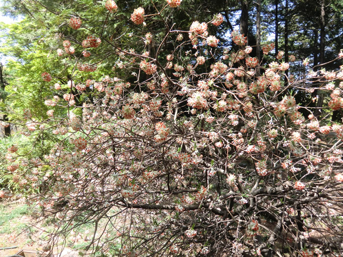 珍しい「ミツマタ」、まあるいボールのようでした。