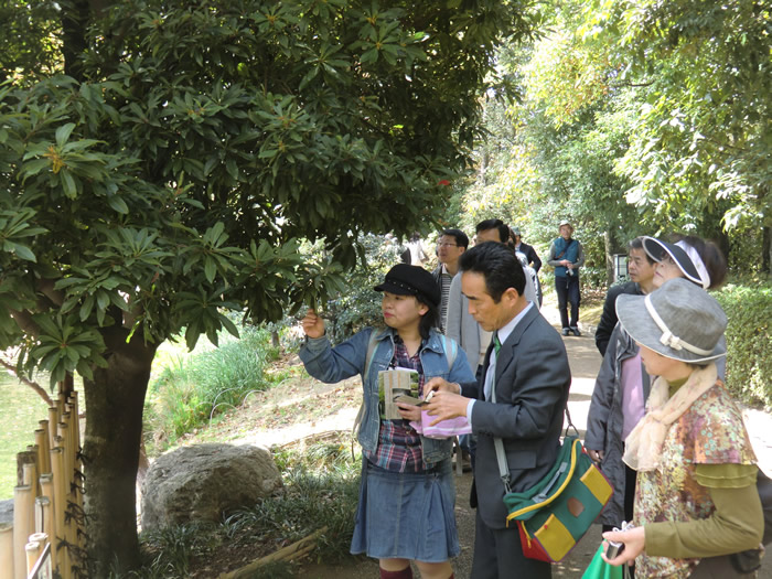 河井講師が「ヤマモモ」の花を説明。