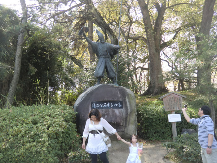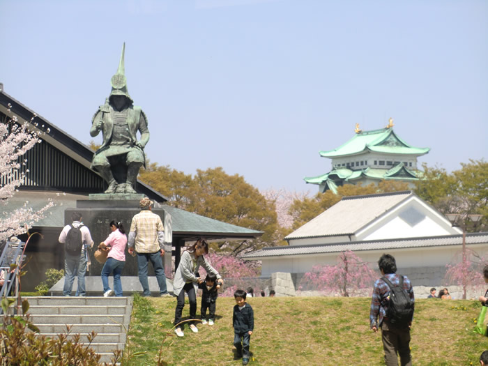 桜が満開の名古屋城、加藤清正が迎えてくれました。