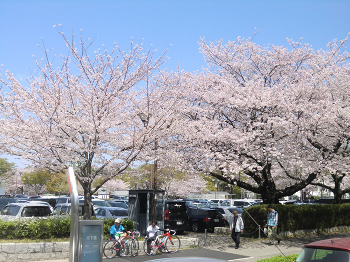 am11:20名古屋市・白鳥庭園到着。 2名乗車。 桜が満開。