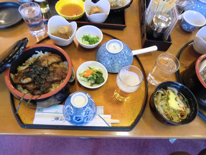 ビールでカンパーイ。 「ひつまぶし」まいうー。私、ウナギだめなの、「きしめん定食」頂きます。.
