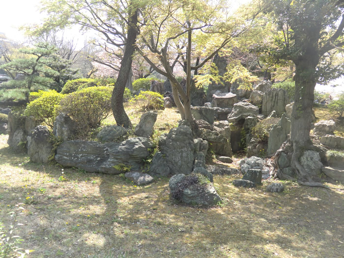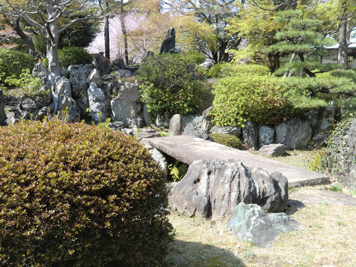 14日に開園。 池泉廻遊式庭園で中部地方の地形をモチーフに築山を「御嶽山」、そこから