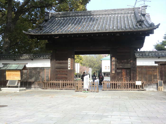 三間薬医門。昭和20年の大空襲を免れた数少ない遺産。武家屋敷の面影を伝える貴重