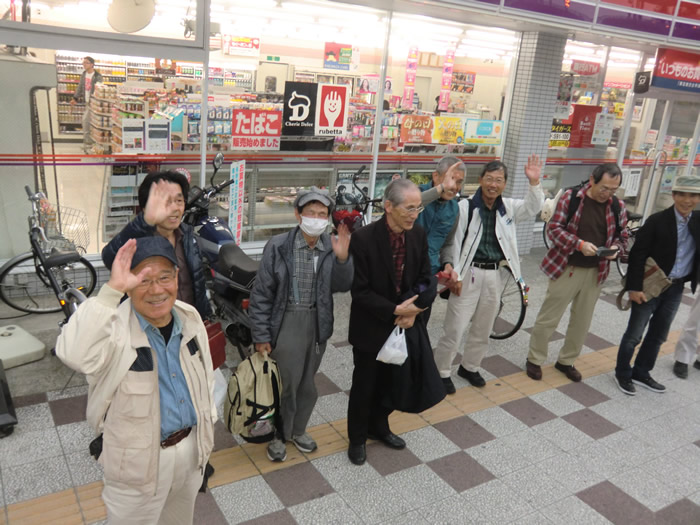 名古屋乗降の速水さん、大前さん挨拶。秋の庭園見学会でお会いしましょう。お元気で。帰路の