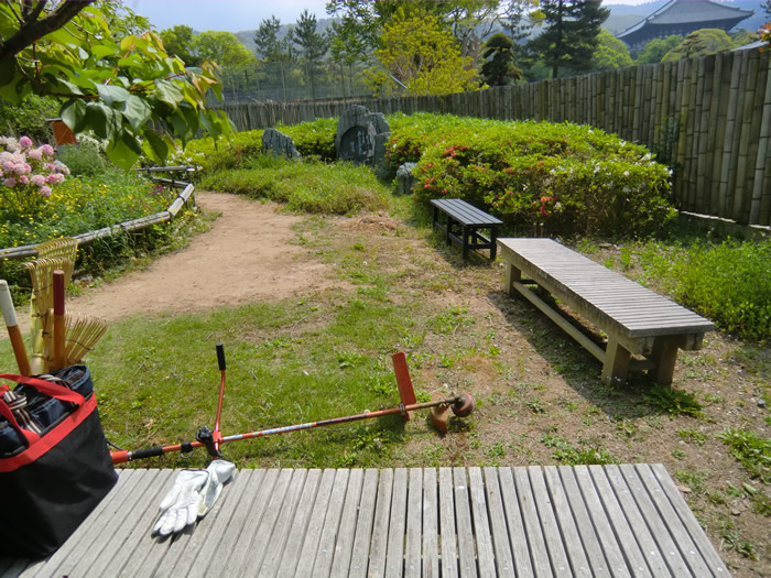 正岡子規が詠んだ「柿食えば・・・」の柿の古木周りの雑草を取
