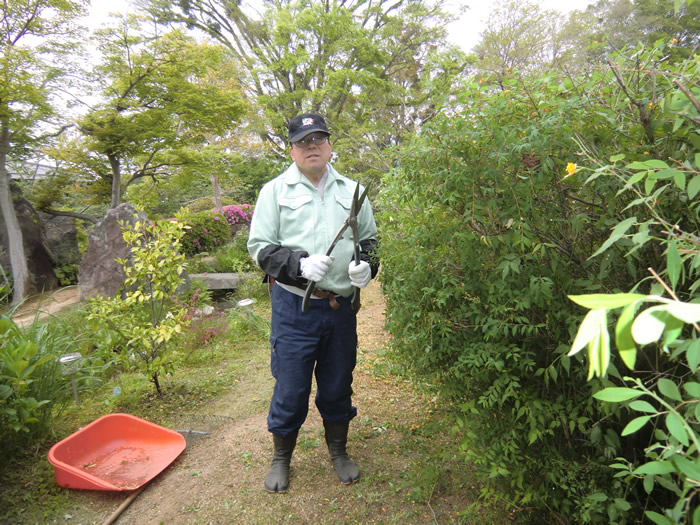 食後、剪定を頑張る柳本さん。