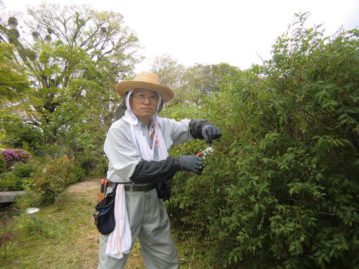 ツツジの剪定が一段落です・・・山本さん。